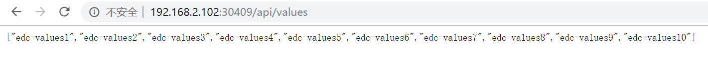 由于我们的示例WebAPI项目十分简单,因此能够访问到ValuesController的接口就代表我们已经部署到K8S成功了。