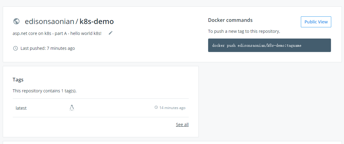 当然你也可以直接使用我上传的这个镜像(edisonsaonian/k8s-demo)。