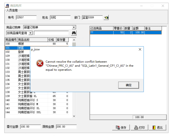 将sqlserver数据库从Windows服务器迁移到了linux服务器,经过一番折腾终于是安装好了。数据库也正常运行,但下午的时候同事告诉我说,软件在做操作的时候提示排序规则有问题。部分中文乱码,显示为问号,如下图所示