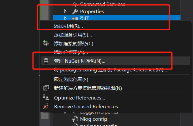 在这里,我封装了一个NLog使用帮助类,提供给全站调用,这样就可以避免在不同的类中实例化Nlog对象的步骤。