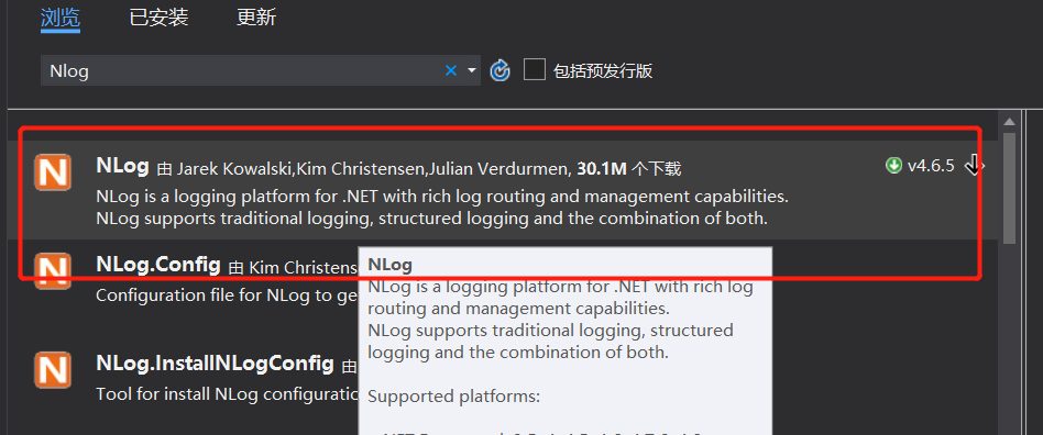 因为之前在项目开发中一直都是使用的Log4Net作为项目的日志记录框架,最近忽然感觉对它已经有点腻了,所以尝试着使用了NLog作为新项目的日志记录框架(当然作为一名有志向的攻城狮永远都不能只局限于眼前的技术,要不断的使用和学习新的技术)。当然serilog也是一个不错的日志记录框架哟,不过今天主要还是要讲述的是NLog在项目中的配置和使用。