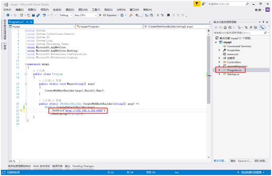 打开Program.cs加入: .UseUrls("http://192.168.3.162:6600"),为了方便我们先写死这个IP端口,这里未来可以改成使用配置文件来配置。