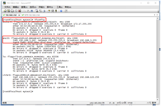 如图发现我的Linux服务器的IP地址是:192.168.3.162