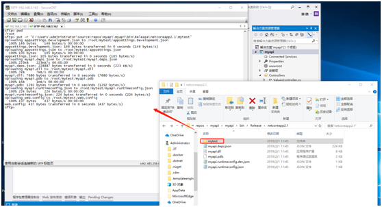 打开SecureCRT的SFTP直接把mytest文件夹拖拽进去即可。输入pwd可查看当前sftp所在目录。