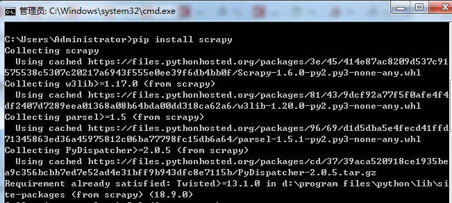 2.安装Scrapy:运行CMD,输入:pip install Scrapy