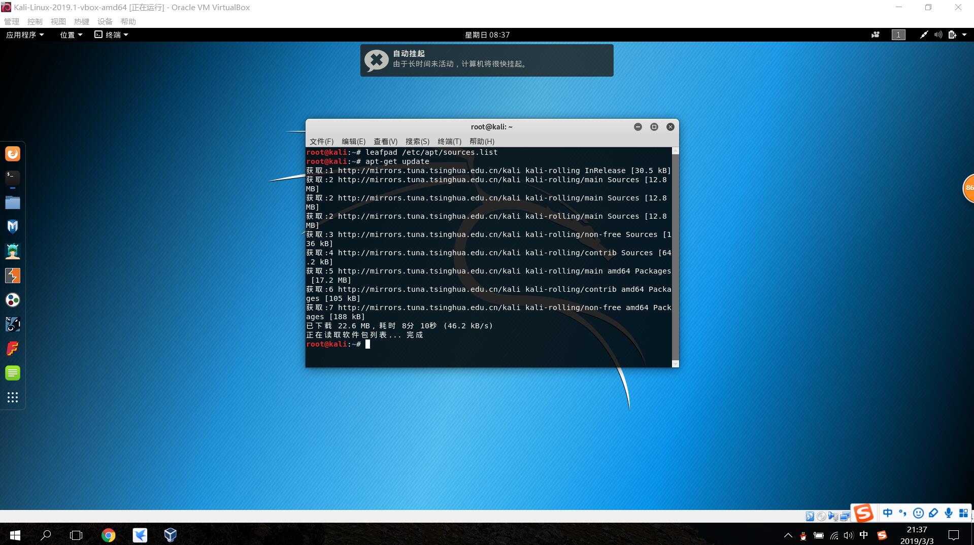 在命令行中输入leafpad /etc/apt/sources.list进入sources.list文件