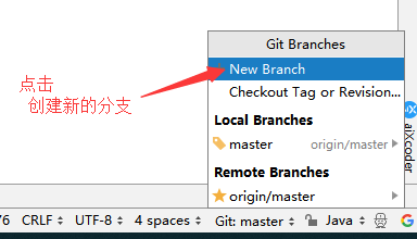 8:点击 Git:master 创建新的分支。填写新分支名称(这个随意)。点击OK。