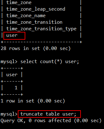 mysql> select * from user; 从上的表也同样没有了,所以会报错不存在。
