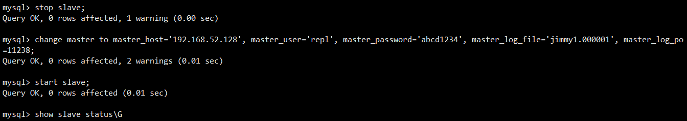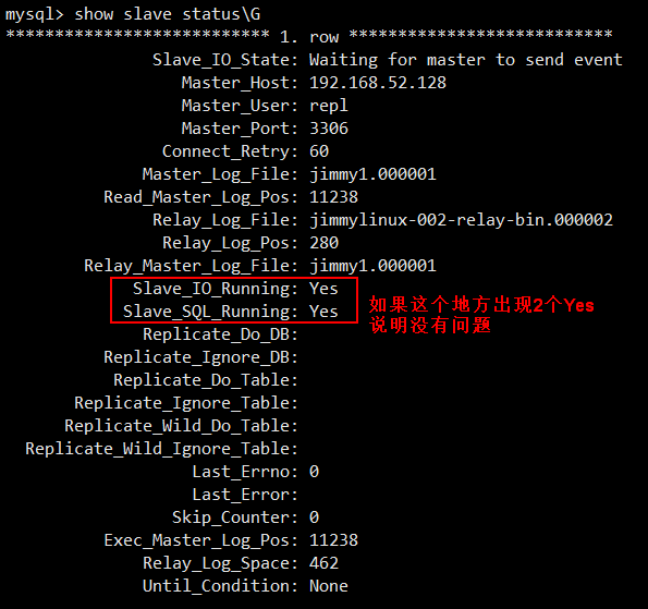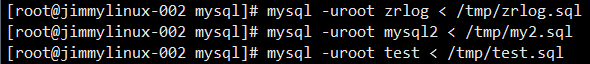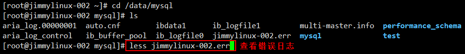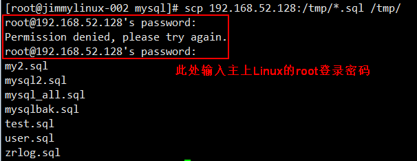 [root@jimmylinux-001 mysql]# mysql -uroot -pabcd1234 登录主机器的mysql