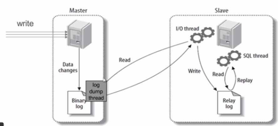 主上有一个log dump线程,用来和从的I/O线程传递binlog