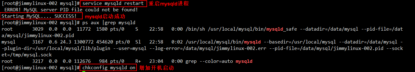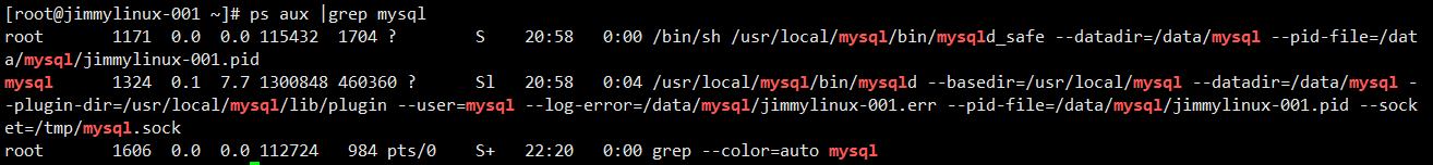 [root@jimmylinux-002 mysql]# alias 'mysql=/usr/local/mysql/bin/mysql'