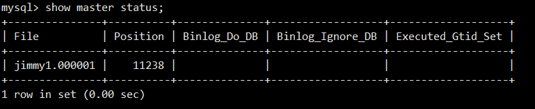 安装并启动好mysql后,修改my.cnf,增加server-id=128和log_bin=jimmy1