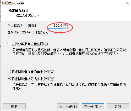 内存建议至少1GB。处理器数量选择1,每个处理器的核心数量选择2(选1也可以),这样相当于1颗物理CPU,2颗逻辑CPU。网络适配器,选择NAT模式,这种网络模式是兼容性最好的。一路默认推荐到创建新虚拟磁盘,磁盘大小改为100G,设置磁盘位置,下一步完成。
