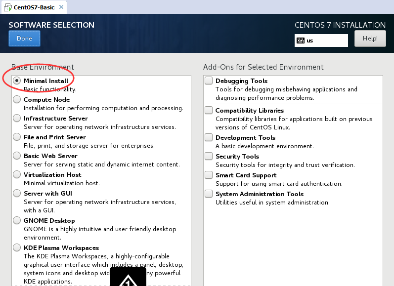 4 软件SOFTWARE 选择 默认最小安装 点击Done