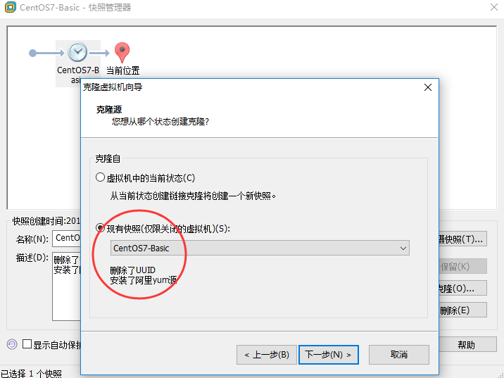 点击克隆,选择现有快照