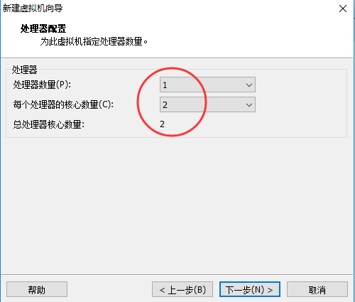 5 下一步,设置处理器数量 内存