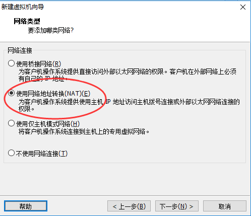- NAT模式:这种模式下,物理机会充当一个“路由器”的角色,虚拟机要想上网,必须经过物理机,那物理机如果不能上网,虚拟机也就不能上网了。之所以说这种模式兼容性最好,是因为物理机的网络环境变化时,虚拟机的网络并不会有影响,比如,上班时你把物理机连接在公司的网络环境中,下班后又把物理机连接在你家的路由器上。你公司的网段有可能和你家的网段是不同的。桥接模式下,虚拟机和物理机一样,都要自动获取IP才可以上网,而做实验的时候,是需要把虚拟机设置为静态IP的,这样就导致虚拟机网络不稳定。而设置为NAT模式,虚拟机的网络并不需要依赖你公司的网络环境或者你家的网络环境。