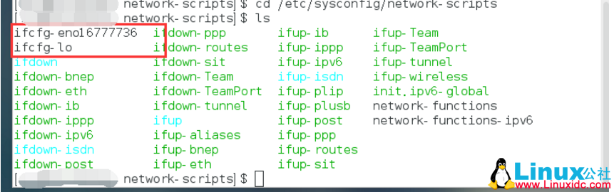 这里首先是进入/etc/sysconfig/network-scripts中查看现有的配置文件: