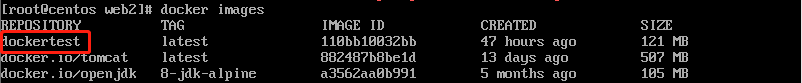 标红的就是我们上面创建名字为dockertest的docker镜像,tomcat忽略。