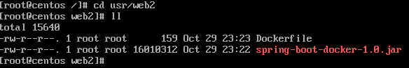上传Dockerfile和jar包文件到虚拟机上面,我上传到 /usr/web2/ 下面(使用的FileZilla FTP Clent上传)