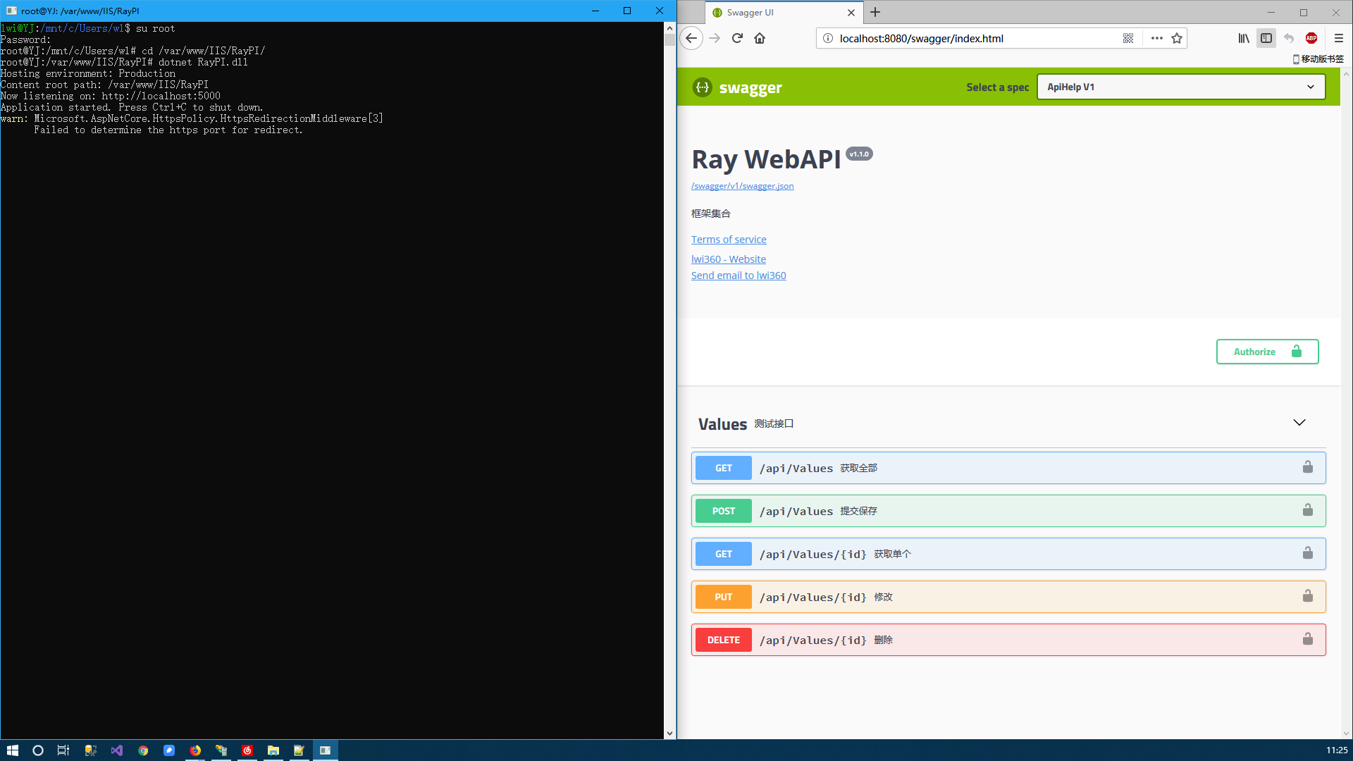 root@YJ:/var/www/IIS/RayPI# dotnet RayPI.dll