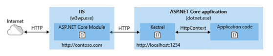 下图说明了 IIS、ASP.NET Core Module和进程外托管的应用之间的关系: