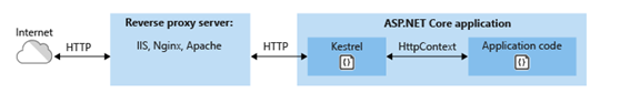 (2) 与反向代理服务器(如 Internet Information Services (IIS)、Nginx 或 Apache)结合使用。 反向代理服务器接收来自 Internet 的 HTTP 请求,并将这些请求转发到 Kestrel。