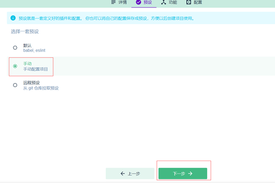 可以选择第一个(默认创建的工程),这里选择下面第二个Manually select features