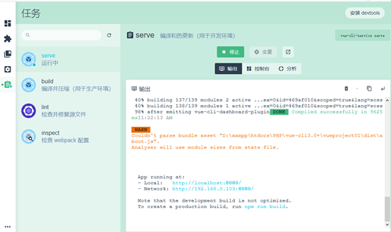 运行项目,跟控制台npm run serve效果一样的