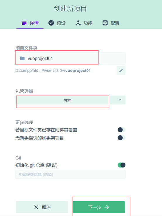vue create vueproject01