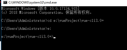 cd e:\vueProject\vue-cli3.0+ 回车