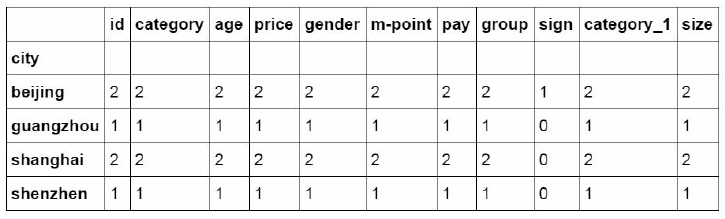 在前面的代码后面增加city列,并使用count函数进行计数。相当于Excel中的countifs函数的功能