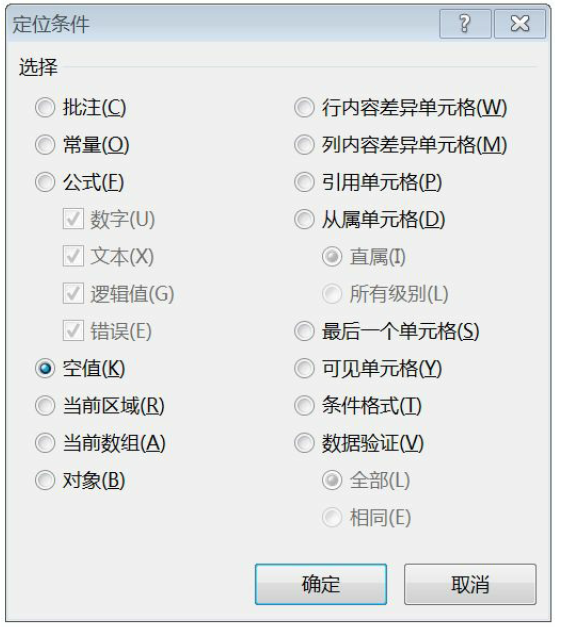 Excel中可以通过“查找和替换”功能对空值进行处理