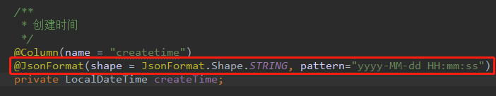 在接收参数实体类的createtime字段添加JsonFormat注解