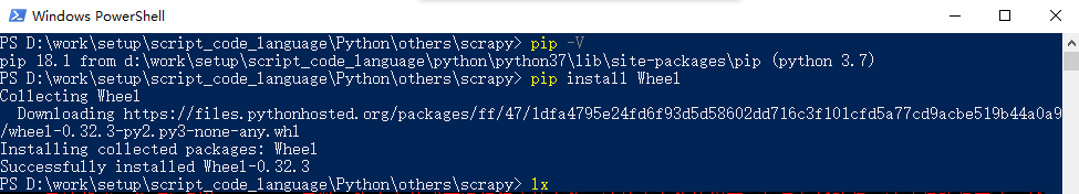 PS D:\work\setup\script_code_language\Python\others\scrapy> pip install .\Twisted-18.9.0-cp37-cp37m-win_amd64.whl # 3) 安装twisted