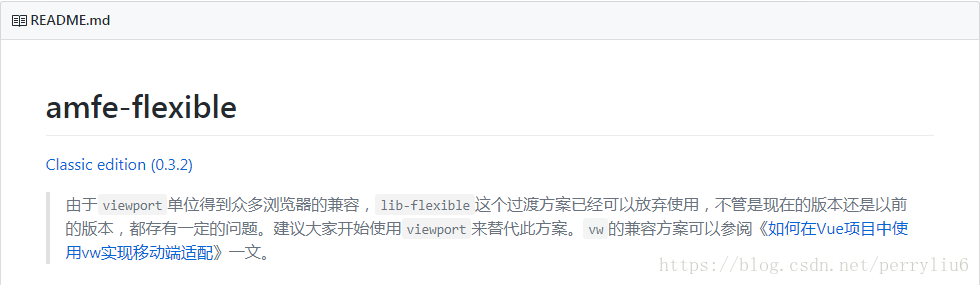 在使用vue init webpack构建的项目中,一开始我准备使用rem布局,以前使用rem布局,都采用的是AMFE团队发布的lib-flexible,但是在flexible的redeme的一开始 我就读到了这么一段话,官方指引我使用vw实现适配