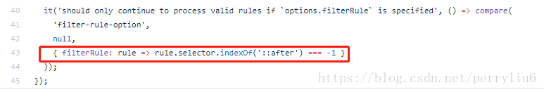 2 filterRule: rule => rule.selector.indexOf('::after') === -1 && rule.selector.indexOf('::before') === -1 && rule.selector.indexOf(':after') === -1 && rule.selector.indexOf(':before') === -1