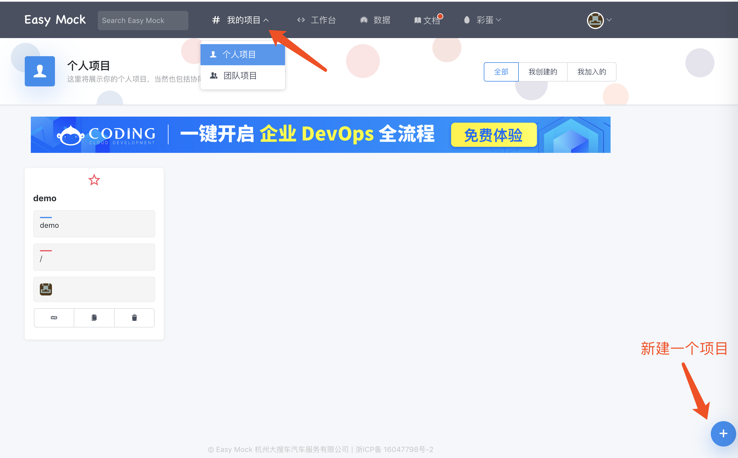 Easy Mock 是一个可视化,并且能快速生成 模拟数据 的持久化服务。不需要再本地安装,只需要到官网上注册登陆后加入或新建项目,在项目内定义接口和返回数据的格式。