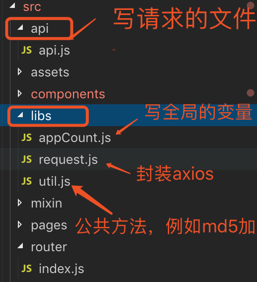 在vue项目中src文件夹下,有这几个需要新增的地方。