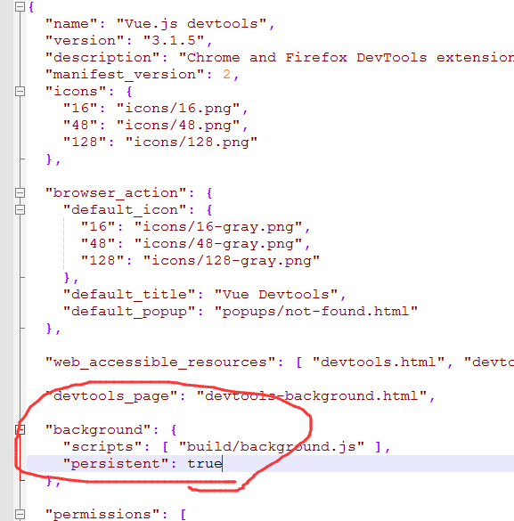 修改shells、chrome目录下的mainifest.json 中的persistant为true: