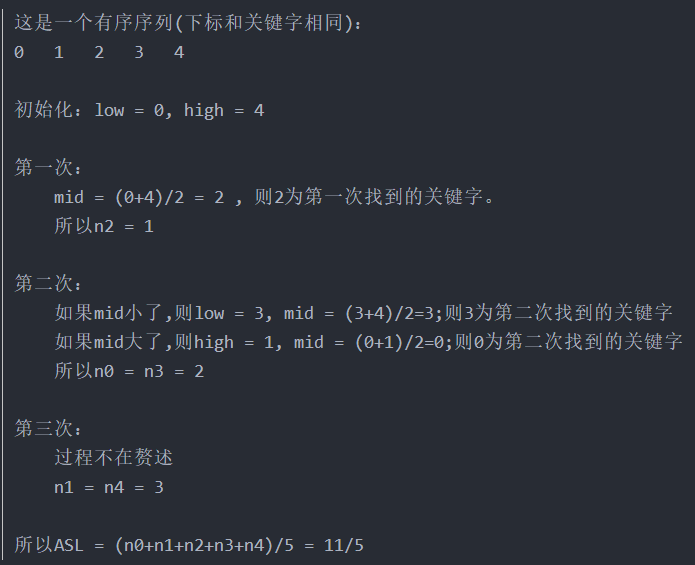 二分(折半)查找算法的ASL:如图所示,时间复杂度为O(log2(n))