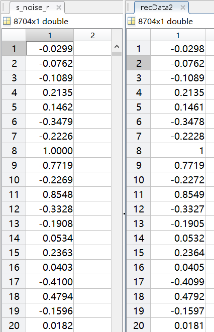 MATLAB显示两者的差值。可见在浮点转定点数时,会有一定的精度损失,但仅在10的负四次方数量级,在很多精度要求不高的场合下可以忽略。
