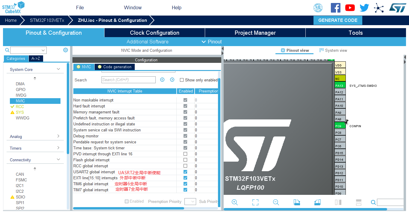 使用STM32CubeMX进行以下配置: