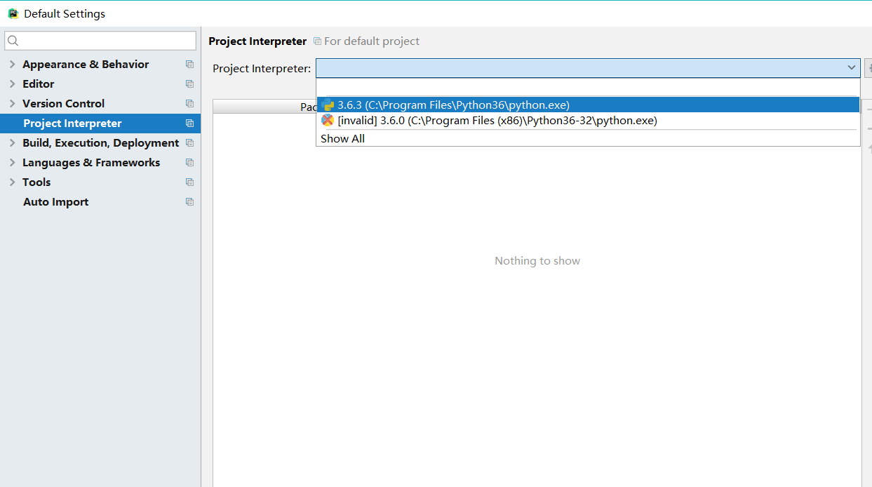 2、选择project interpreter选项