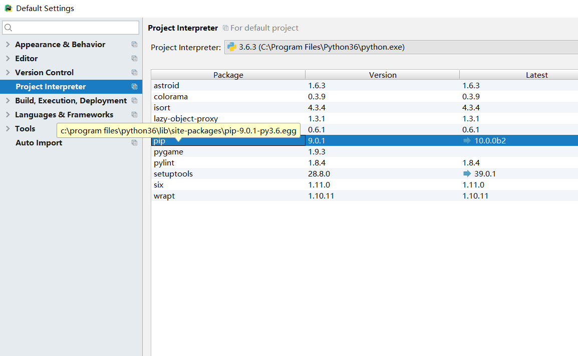 上面显示的是已安装的模块,要安装我们所需要的模块,需要先双击pip