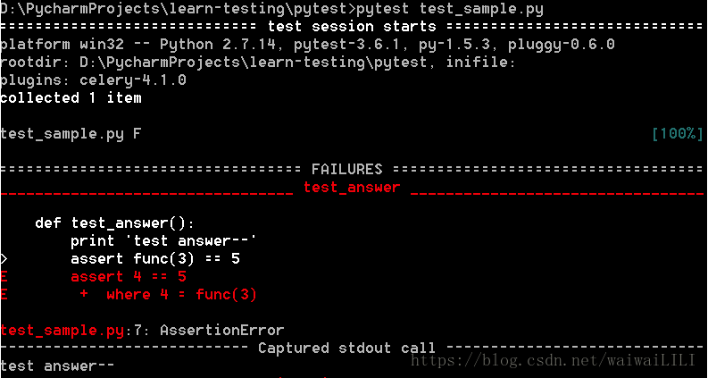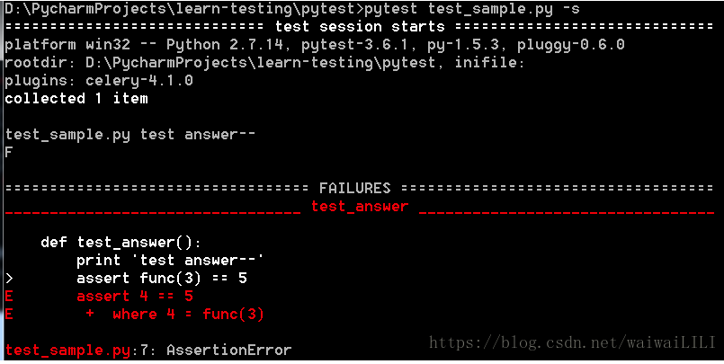 $pyteset -s test_sample.py,加了-s不再显示Captured stdout call信息,但是会显示test session starts