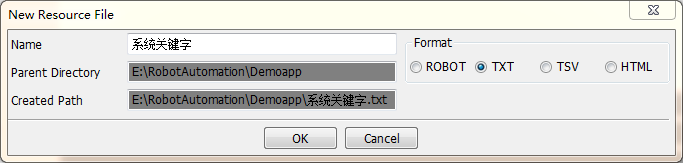 5. 创建资源 New Resource(右击项目新建,用于创建关键字)