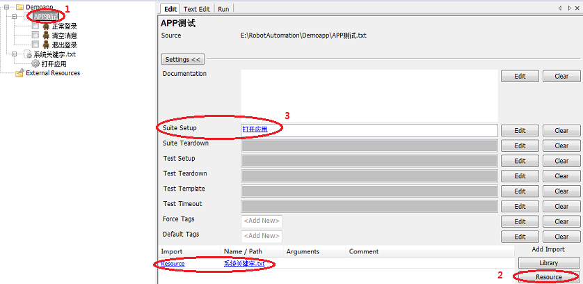 4. 在测试套件上导入Resource,并加入Suite Setup
