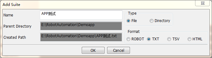 3. 创建测试套件 New Suite(右击项目新建,类型选择File,用于创建测试用例)