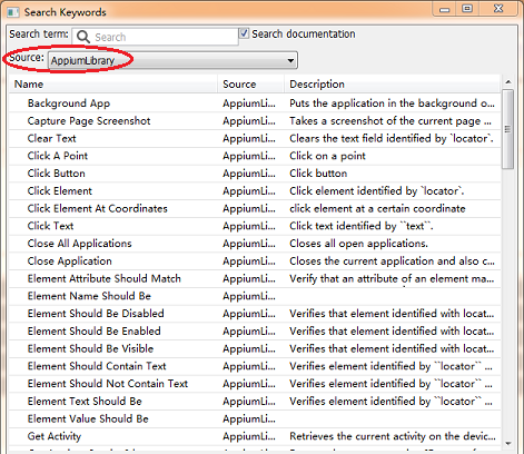 2. 按F5查看AppiumLibrary各种方法
